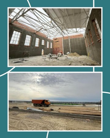 Мектептің екі корпусының шатыры жабылып, спортзалдың шатырын жабу жұмыстары жүргізілуде. Сонымен қатар терезелер орнатылып, сыртқы қаптау және ішкі әрлеу жұмыстары қатар атқарылуда. Ішкі жылу жүйелері мен батареялар да қойылып жатыр.