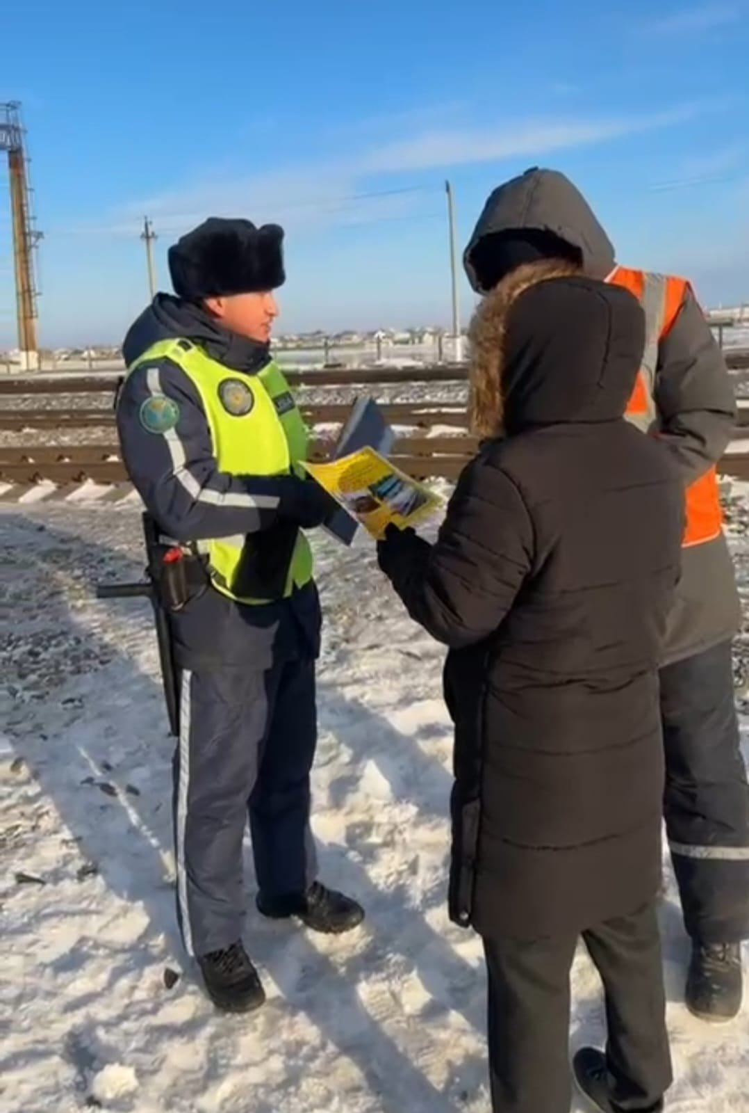 Теміржол жолдың тек белгіленген жерлерден, жаяу жүргіншілер өткелдері арқылы өтуіңізді сұраймыз. Қауіпсіздік ережелерін сақтаңыздар.