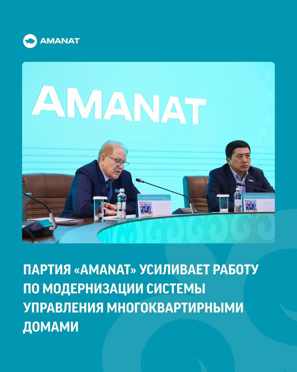 «AMANAT» партиясы тұрғын үй-коммуналдық шаруашылығын жаңғыртуға және көппәтерлі тұрғын үйлерді басқару сапасын арттыруға бағытталған «Тұрғындар аманаты» жобасын жүйелі түрде жүзеге асыру жұмысын жалғастыруда. Астанада партияның Орталық аппараты мен өңірлік филиалдары өкілдерінің, Мәжіліс депутаттарының және өңір әкімдері орынбасарларының қатысуымен кеңес өтті.«AMANAT» партиясының сайлауалды бағдарламасында тұрғын үй-коммуналдық саланы жаңғырту жұмысы негізгі басымдықтардың бірі ретінде айқындалды. Бүгінде инженерлік желілерді жаңарту, шығындардың ашықтығын арттыру және тұрғын үйлерді басқару жүйесін жетілдіру жұмысы жүргізілуде. Бұл қадам инфрақұрылымның тозуын төмендетіп, қызмет сапасын арттыруға мүмкіндік беріп отыр.