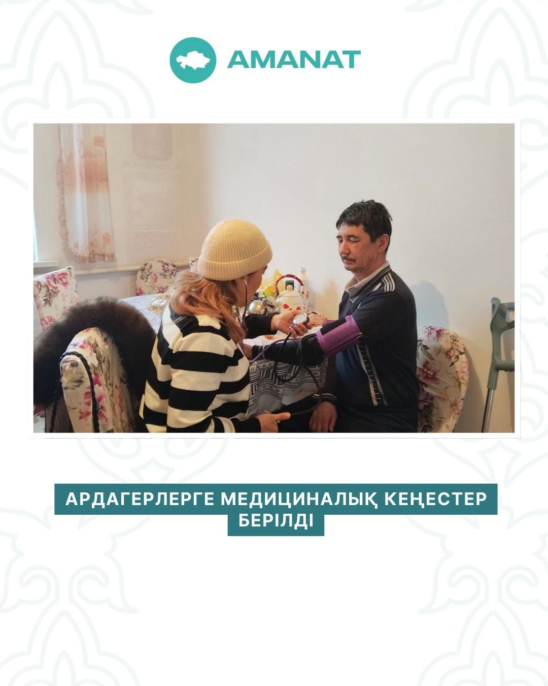 “Ардагерлерді ардақтайық” партиялық жобасы аясында “Аудандық Диагностика” бастауыш партия ұйымының мүшелері қаладағы бірқатар ардагердің шаңырағына арнайы барып, медициналық кеңестер беріп, денсаулық жағдайларымен танысты.Іс-шараның басты мақсаты – қарттарға құрмет көрсету ғана емес, олардың денсаулығын бақылауда ұстап, дер кезінде профилактикалық көмек көрсету. Үй жағдайында өткізілген қабылдау барысында медицина қызметкерлері ардагерлердің қан қысымын өлшеп, жалпы тексеріс жүргізді, дәрі-дәрмектерді дұрыс қабылдау тәртібін түсіндіріп, созылмалы аурулардың алдын алу жолдарын айтып өтті. Сонымен қатар дұрыс тамақтану, күн тәртібі, физикалық белсенділік пен маусымдық аурулардан сақтану бойынша жан-жақты ұсыныстар берілді.