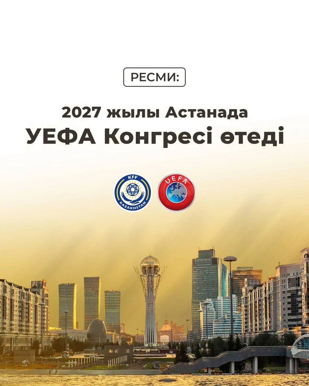 Еуропа футбол қауымдастықтарының одағы УЕФА 51-ші Конгресі 2027 жылы 4 наурызда Қазақстан астанасында өтетінін ресми жариялады.Бұл шешім Брюссельде өткен УЕФА-ның мерейтойлы 50-ші Конгресінде хабарланды. Конгреске Қазақстан футбол федерациясының Бас хатшысы Давид Лория қатысты.