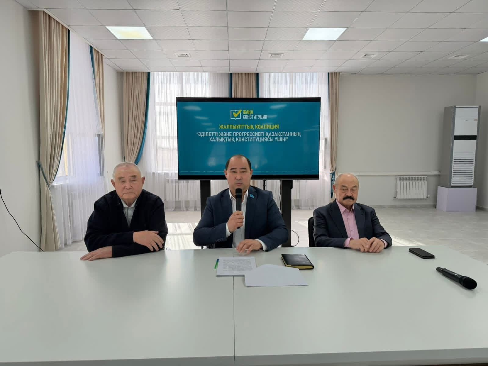 «Руханият» орталығында жаңа Конституциясы жобасына арналған кезекті басқосу болып өтті. Аудандық коалиция өкілдері ардагерлермен жүздесіп, Ата Заңға енгізілетін өзгерістердің мәні мен қоғамға тигізер әсерін талқылады. Кездесуге аудандық коалиция жетекшісі Ғалымжан Жарқынбек, коалиция мүшелері Серқожа Ыдырысов, Өмірсерік Тақырбасов, Серік Мұсабаев, Аллаберген Ахметов қатысты.