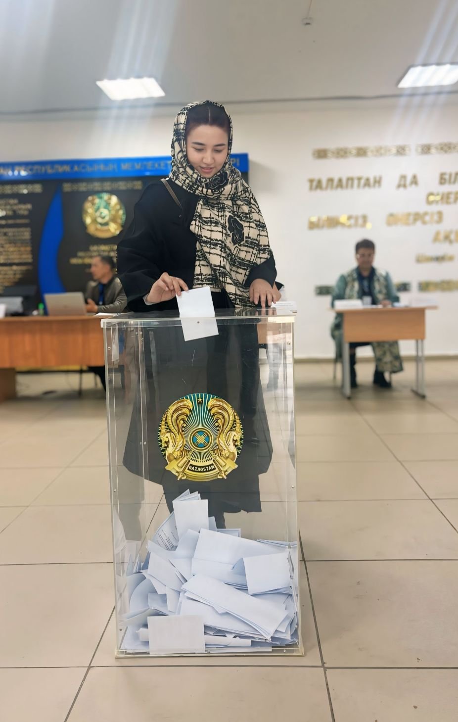 –Бүгін референдумға қатысып, өз дауысымды бердім. Ол әр азаматтың қоғам алдындағы жауапкершілігінің бір көрінісі деп білемін. Қандай да мәселеге бейжай қарамай, дауыс беру – қоғам үшін аса маңызды деп ойлаймын. Осындай сәттер азаматтық белсенділіктің мәнін тереңірек сезіндіреді. Себебі, бүгінгі күн еліміз үшін маңызды. Сайлау учаскелерінің дауыс беруге ыңғайлы болу үшін барлық жағдай заң талаптарын сақтай отырып жасалғаны да көңілімізден шықты.