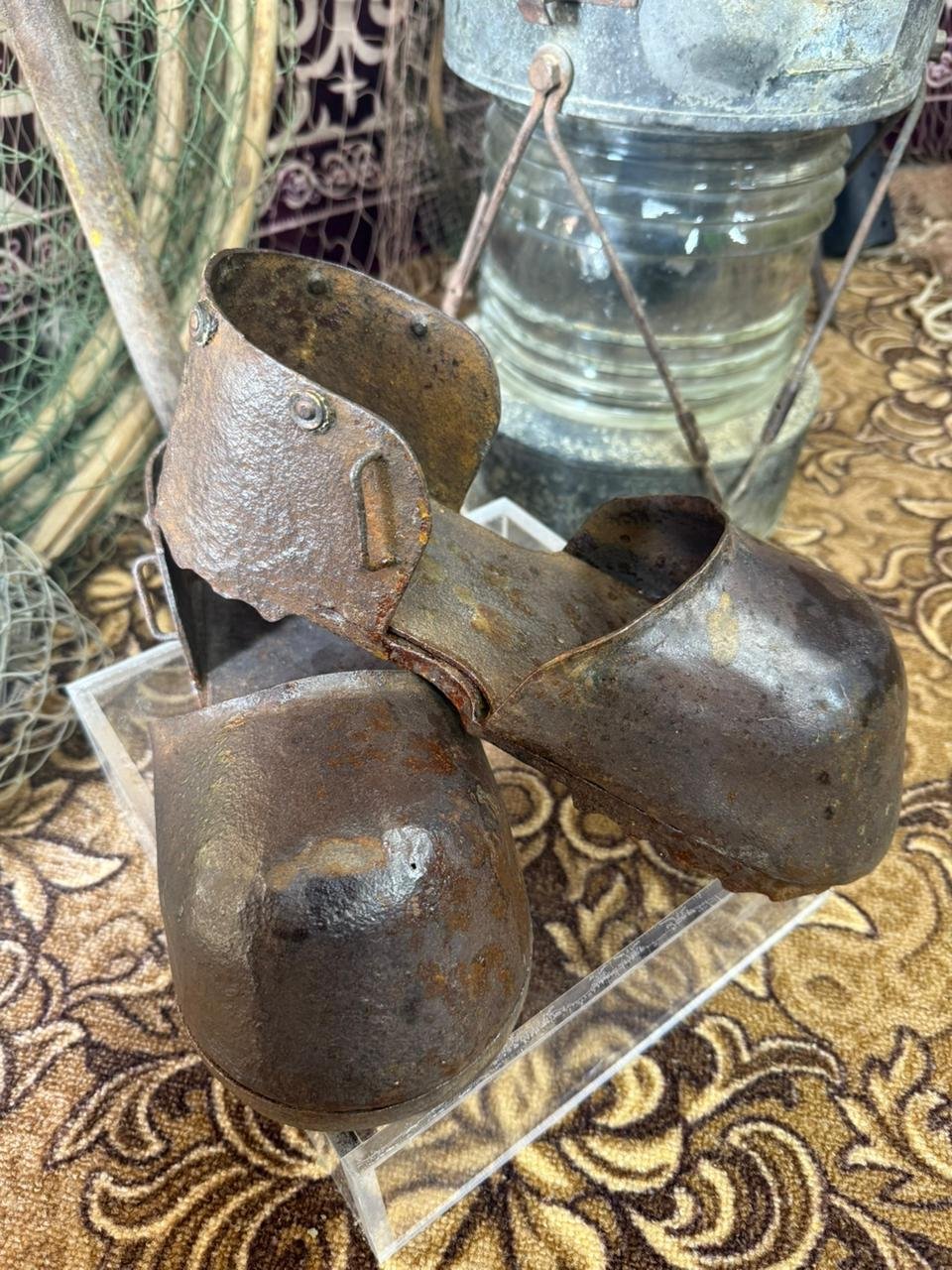 Музей мамандарының айтуынша темір аяқ киім қажеттілігі су астына түскенде керек болған. Ал кеменің түбіне су толып қалса, балықшылар су астына тез батып, тесілген жерді бітеу үшін темір етікпен су кешкен. Бұзылған кемені су астында да жанып тұратын шамшырақпен жөндейтін болған екен.