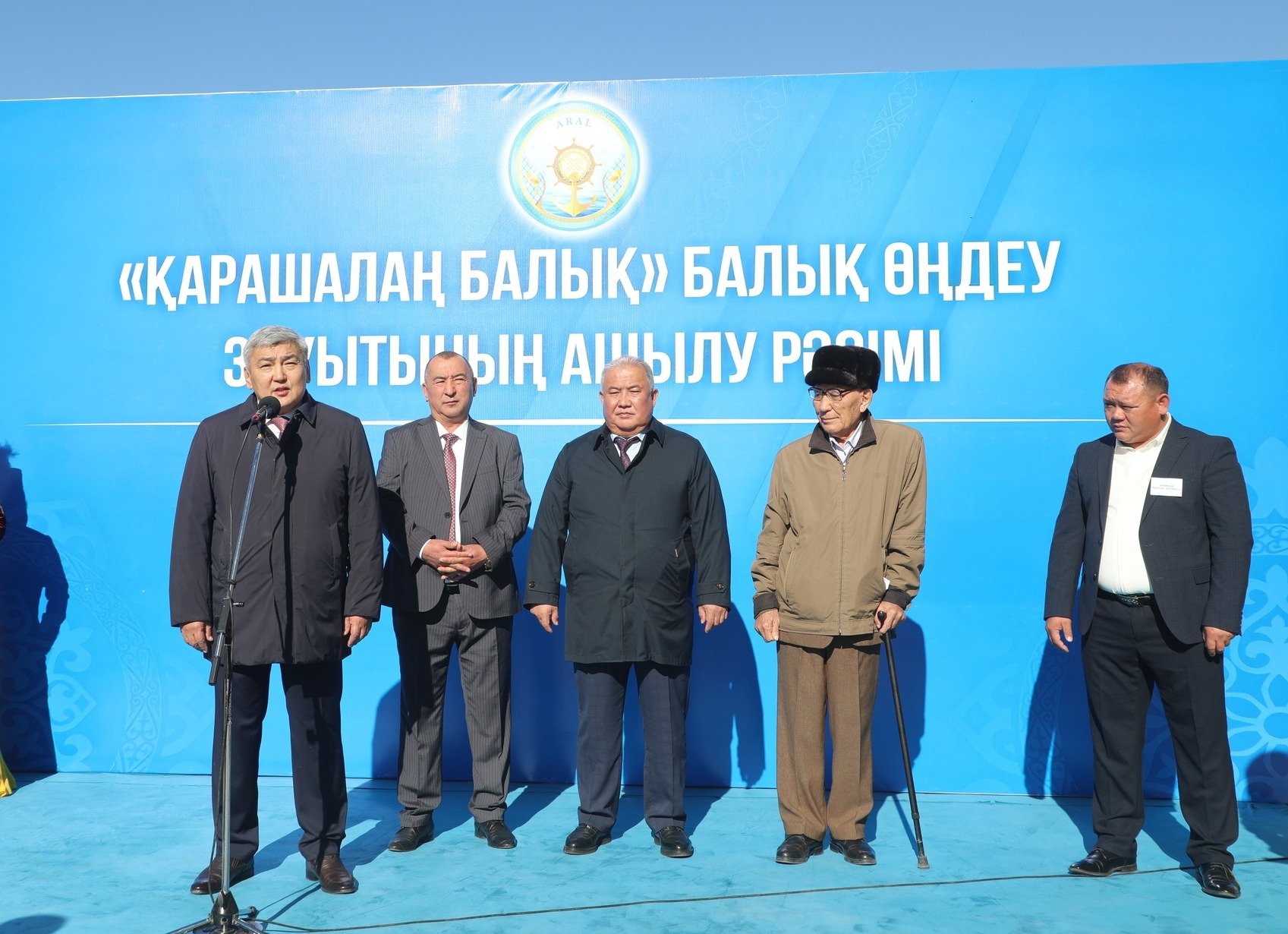 – Құрметті қонақтар, қадірлі жерлестер! Өндірістің жаңа кезеңіне қадам басқалы отырған “Қарашалаң балық” зауытының ашылуымен баршаңызды құттықтаймын! Бұл игілікті бастаманың Арал балық шаруашылығы өндірісінің құрылғанына 100 жыл толуымен тұспа-тұс келуі – ерекше символдық мәнге ие.