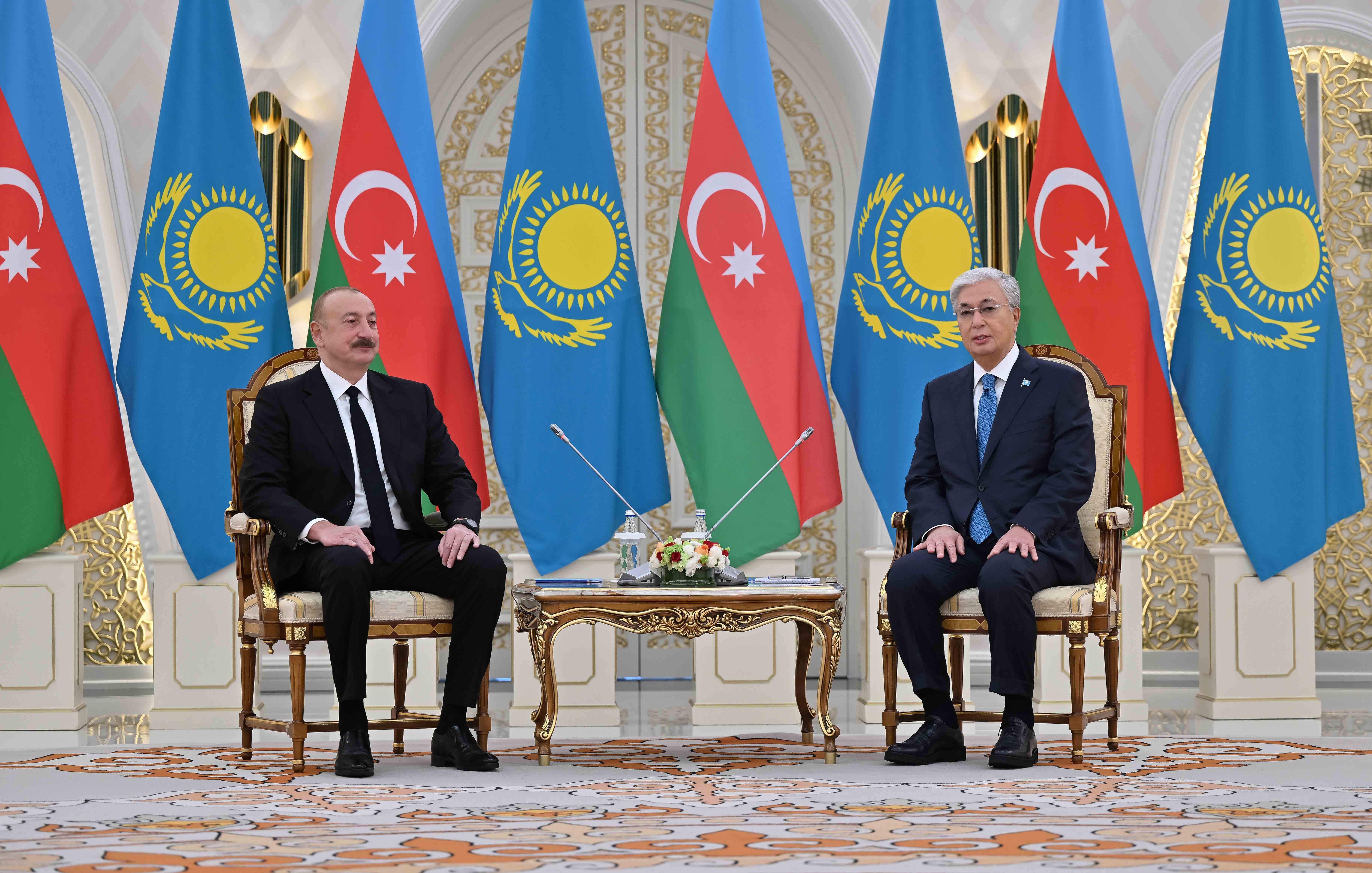 – Сізді мемлекеттік сапарыңыз аясында Қазақстанда қарсы алу – мен үшін үлкен мәртебе. Бұл – елдеріміздің арасындағы стратегиялық серіктестік пен одақтастық қатынастарды одан әрі дамыту тұрғысынан өте маңызды оқиға. Қазақстан мен Әзербайжан тек достас елдер емес, сондай-ақ бауырлас халықтар. Сондықтан Сіздің еліңізбен сан қырлы ынтымақтастықты өркендетуге баса мән береміз. Қазіргі кезде Әзербайжан Сіздің қуатты көшбасшылығыңызбен халықаралық аренадағы абырой-беделін елеулі түрде арттырды, өз өңірінде ықпалды мемлекет ретінде өте маңызды рөл атқарады. Біз үшін Әзербайжанмен сауда-экономикалық ынтымақтастықты және саяси серіктестікті нығайту – аса өзекті міндет, – деді Мемлекет басшысы.