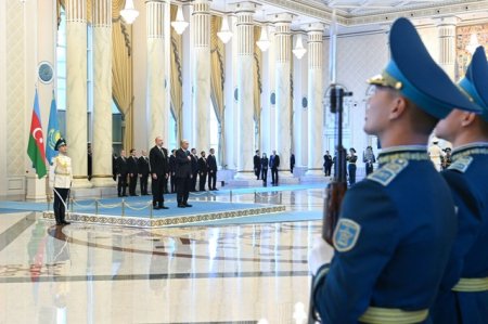 «Ақорда» резиденциясында Әзербайжан Президентін ресми қарсы алу рәсімі өтті. Қасым-Жомарт Тоқаев пен Ильхам Әлиев бір-біріне ресми делегация мүшелерін таныстырды. Құрмет қарауылы ротасының бастығы мемлекеттер басшыларына рапорт берді. Екі елдің әнұрандары орындалған соң президенттер келіссөз залына барды.