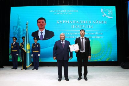 Сондай-ақ ауданның дамуына, білім саласының жақсы нәитже көрсетіп, жетістіктерге жетуіне атсалысқан сала ардагері, Арал ауданының құрметті азаматы Амангелді Бөлекбаевқа Қазақстан Республикасы Оқу-ағарту министрлігінің «Еңбек ардагері» төсбелгісі табысталды.