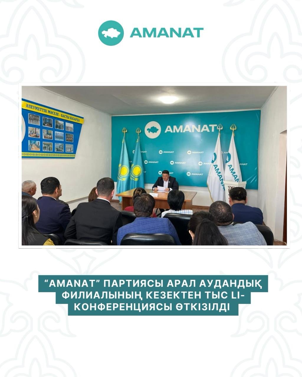 “AMANAT” ПАРТИЯСЫ АРАЛ АУДАНДЫҚ ФИЛИАЛЫНЫҢ КЕЗЕКТЕН ТЫС LI-КОНФЕРЕНЦИЯСЫ ӨТКІЗІЛДІ