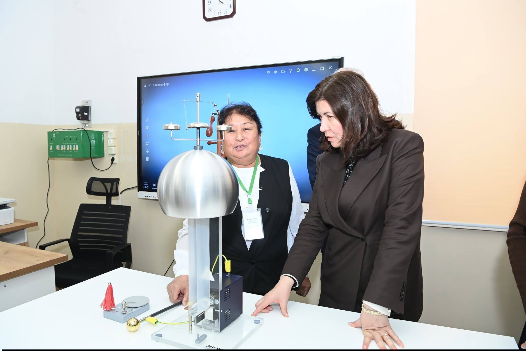 Ал, физика кабинеті электр және оптика бөлімдеріне, жаратылыстану ғылымына, молекулалық физика және термодинамикалық бөлімдерге арналған демострациялық құралдармен жабдықталды. Биология кабинетіне де жиһаздар, зертханалық құралдар, цифрлық микроскоптар, микропреператтар, ылғал препараттар, адам ағзасының модельдері берілді. Химия кабинетіне зертханалық жабдықтар, химиялық препараттар, цифрлық зертхана жинағы, демонстрациялық жұмысқа арналған жиынтықтар, телестудия, арнаулы компьютер, камералар, диодтық жарық жинағы, акустикалық құралдар, телевизор алынды. АRT-студияға гончарлық қондырғылар, сурет салуға арналған құрал-жабдықтар қойылған.