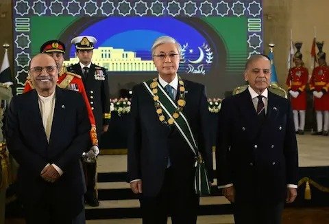 Kyzylorda-news.kz Исламабадта өткен салтанатты іс-шарада Пәкістан Президенті Асиф Али Зардари мен Премьер-министрі Шахбаз Шариф Мемлекет басшысын Nishan-e-Pakistan орденімен марапаттады.Награда ел дамуына ерекше үлес қосқан Пәкістан азаматтарына және шетелдік мемлекет, саясат, сондай-ақ қоғам қайраткерлеріне беріледі.