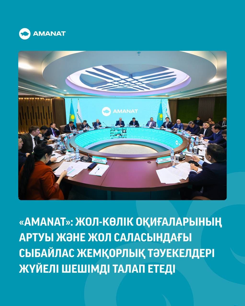«AMANAT»: жол-көлік оқиғаларының артуы мен жол саласындағы сыбайлас жемқорлық тәуекелдері жүйелі шешімді талап етедіҚазақстандағы автомобиль жолдары тек инфрақұрылым нысаны ғана емес, сонымен қатар қауіп-қатері жоғары сала болып отыр. Осы мәселе «AMANAT» партиясы жанындағы Сыбайлас жемқорлыққа қарсы іс-қимыл жөніндегі Республикалық кеңестің Мәжіліс депутаттары, мемлекеттік органдардың өкілдері, сарапшылар және кәсіпкерлер қатысқан отырысында талқыланды.