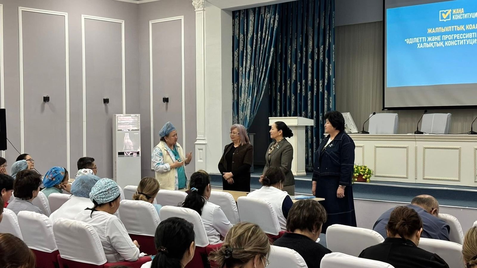 «Әділетті және Прогрессивті Қазақстанның Халықтық Конституциясы үшін!» жалпыұлттық коалициясының өкілдері «Ана мен бала» орталығының ұжымымен кездесті.Жиын барысында жаңа Конституция жобасының негізгі бағыттары, оның әлеуметтік салаға, соның ішінде денсаулық сақтау жүйесіне ықпалы жан-жақты түсіндірілді. Кездесуге коалиция мүшелері Гүлшат Мұсаева, Сәрсенкүл Биқожа, Раушан Ысқақова қатысып, медицина қызметкерлерін 15 наурызда өтетін республикалық референдумға белсенді қатысуға шақырды.