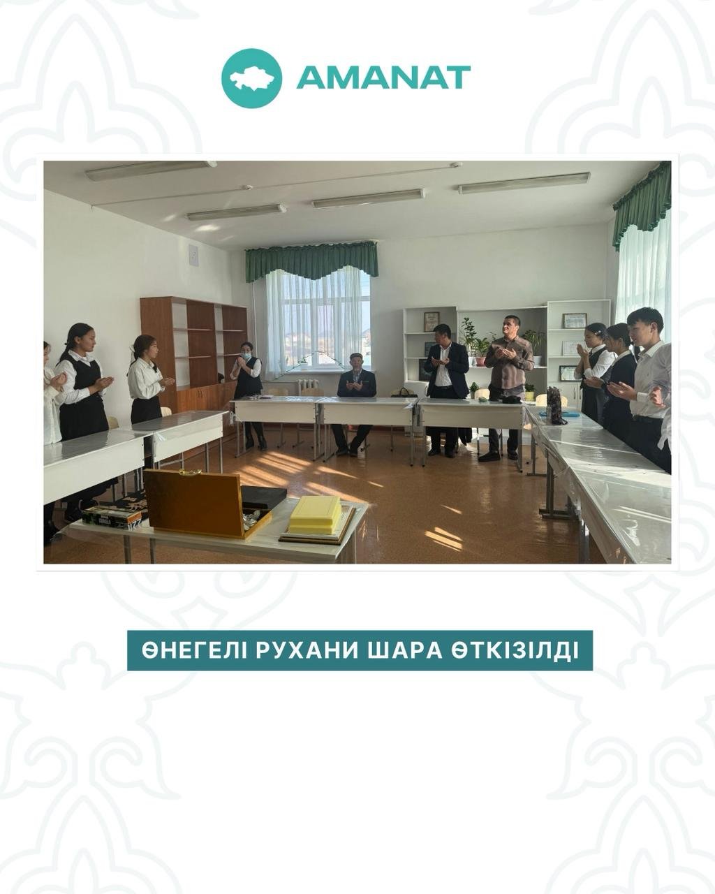 Арал өңірінде өскелең ұрпақты ұлттық құндылықтар рухында тәрбиелеуге бағытталған тағылымды іс-шаралар жүйелі түрде жалғасын табуда. Соның бірі — «AMANAT» партиясының «Бақытты отбасы» партиялық жобасы аясында «Сарбұлақ» бастауыш партия ұйымының ұйымдастыруымен өткен «Әке – шаңырақтың тірегі» атты рухани кездесу болды.Жиынның негізгі мақсаты — жас ұрпаққа халқымыздың ғасырлар бойы жалғасып келе жатқан төл кәсіптерін таныстыру, еңбектің қадірін түсіндіру, ата-баба дәстүрінің тәрбиелік құндылығын дәріптеу болды.
